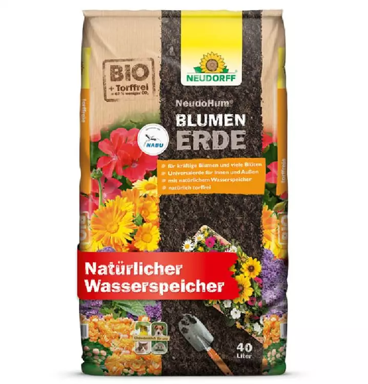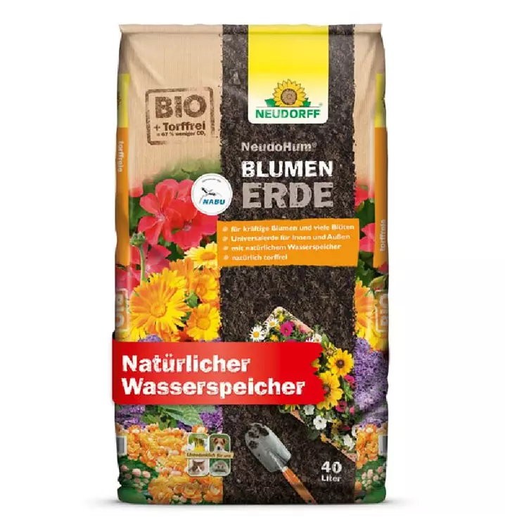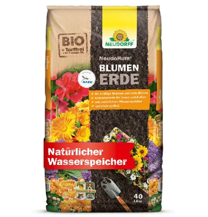 NeudoHum BlumenErde bietet das, was die Pflanze braucht! Das torffreie Pflanzsubstrat sorgt für kräftige Pflanzen und schöne Blüten. Die natürliche Nährstoff- und Wasserspeicherfähigkeit sichert kräftigen Wuchs und optimiert den Wasser- und Lufthaushalt im Substrat durch die einzigartige Kombination nachwachsender Rohstoffe. Die schnell abtrocknende Oberfläche bietet Schutz vor Trauermücken-, Algen- und Pilzbefall.