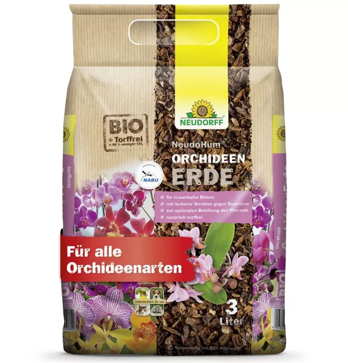 NeudoHum OrchideenErde bietet das, was Ihre Pflanze braucht! Sie sorgt für schöne Blüten und gesunde Wurzeln und ist für alle Orchideenarten geeignet. Das torffreie Pflanzsubstrat ermöglicht eine gute Standfestigkeit der exotischen Schönheiten. Die stabile Pinienrinde gewährleistet eine optimale Belüftung der Wurzeln durch die grobe Struktur und gibt der Orchideenwurzel Raum zum Atmen. So ist auch ein optimaler Schutz vor Staunässe gegeben. Die torffreie Erde ist unbedenklich für Mensch und Tier.