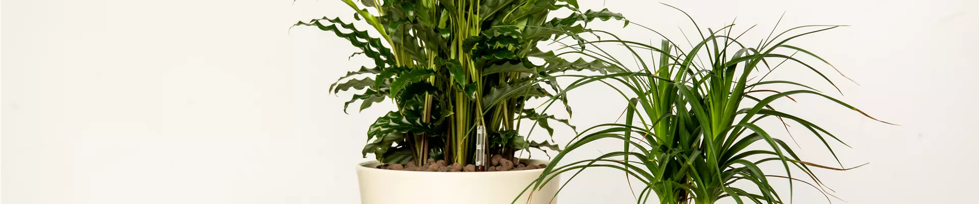 Wer also keine Zeit zum regelmäßigen Gießen hat, weiß seine Hydrokultur-Pflanzen mit einer automatischen Bewässerung jederzeit bestens versorgt.