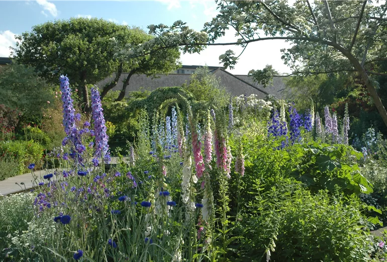 Staudenbeet mit Rittersporn und Fingerhut