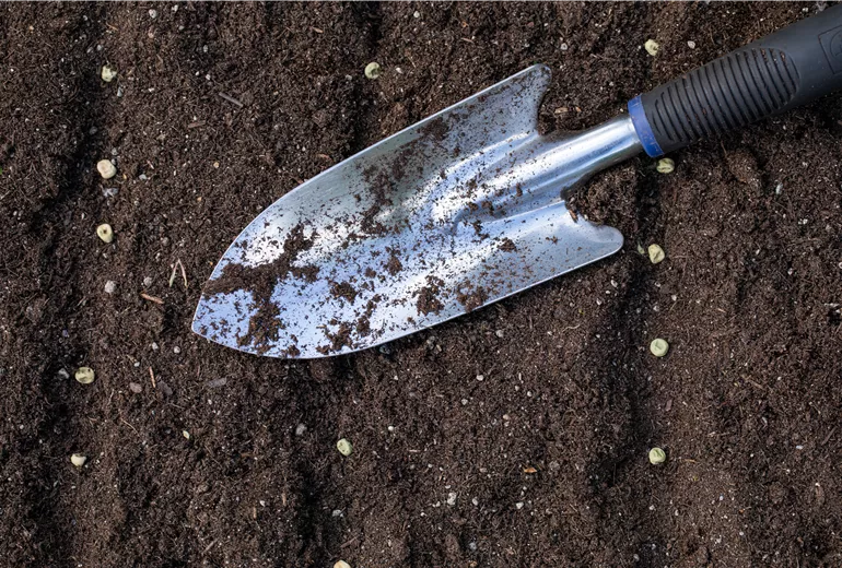 Aussaat - Schaufel in Erde
