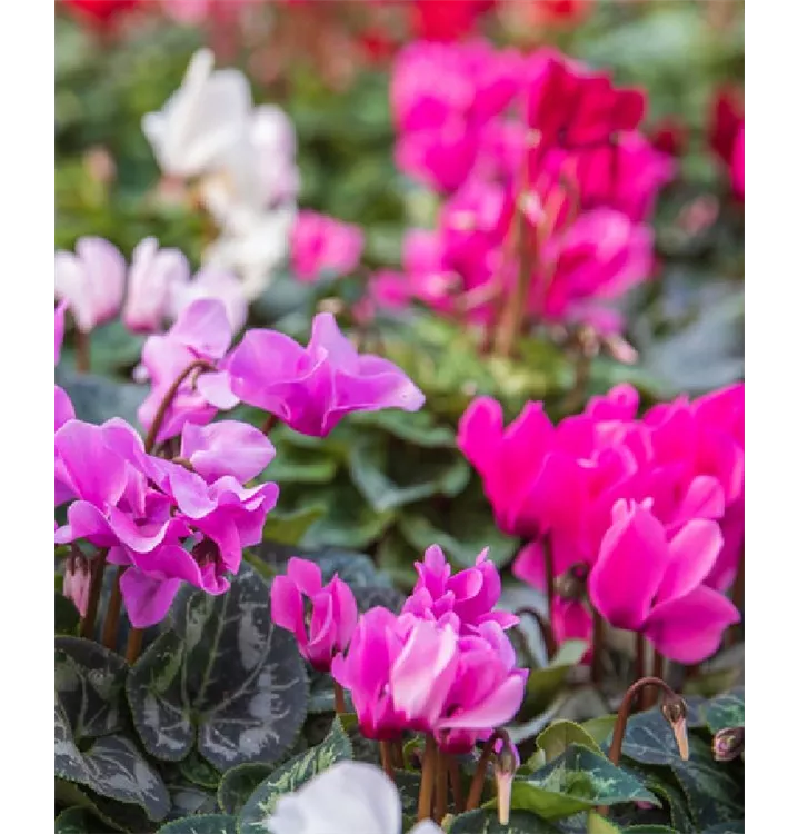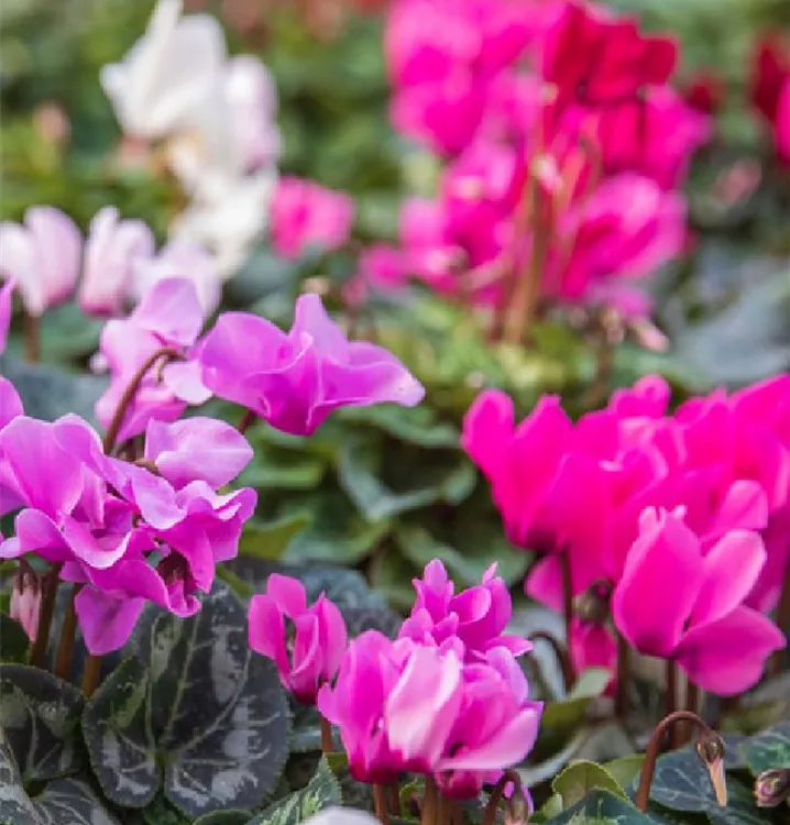 Blüte: rosa, einfach, duftend, VIII-X, Höhe: ca. 10-20cm, wintergrünes, efeublättriges Laub, das im Frühjahr einzieht. Standort: halbschattig, für durchlässige, humose Böden. Auch im Sommer auf gleichmäßig feuchten, aber nicht zu nassen Boden achten. Das Herbst-Alpenveilchen sät sich selbst aus, wenn aus den befruchteten Blüten die Samenkapseln ausreifen. Verwendung: Gehölzränder, unter Bäumen und Sträuchern. Tipp: Mindestens 2 Pflanzen im Abstand von 10-15cm pflanzen, damit sie sich zur Blütezeit bestäuben können. winterhart