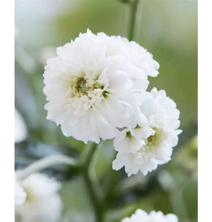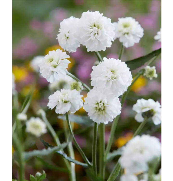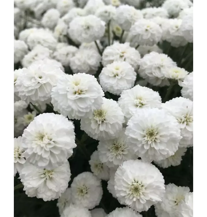 Blüte: weiß, viele kleine gefüllte Blüten, Dauerblüher von Frühling bis Herbst.