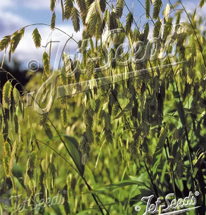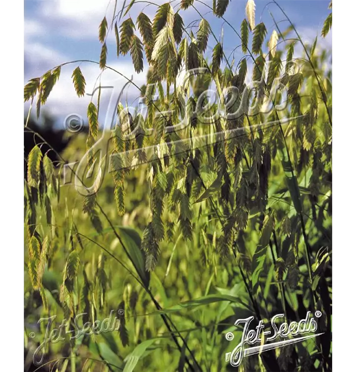 Locker überhängende Blütenrispen mit platt gedrückten Ähren ab August.