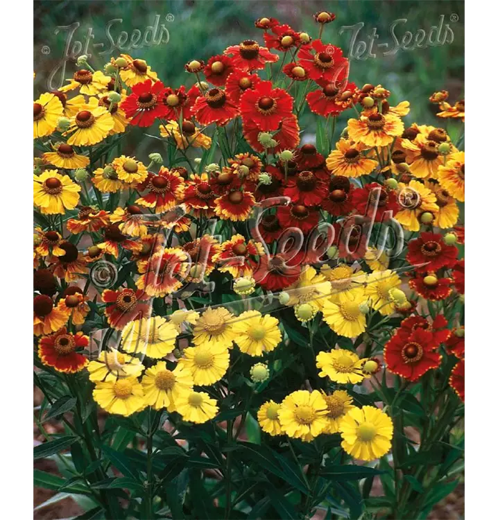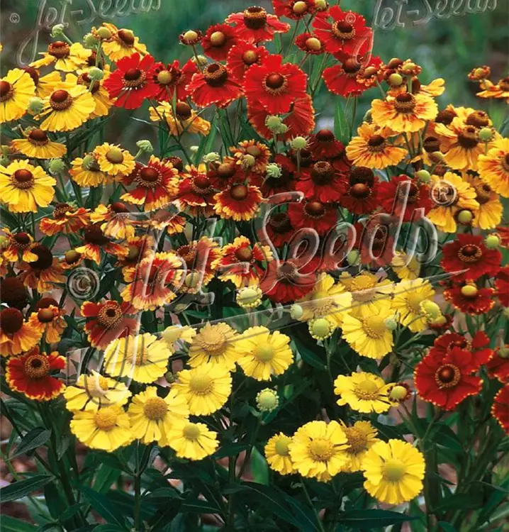 Blüte: gemischte Blütenfarben von gelb bis braunrot, VII-X