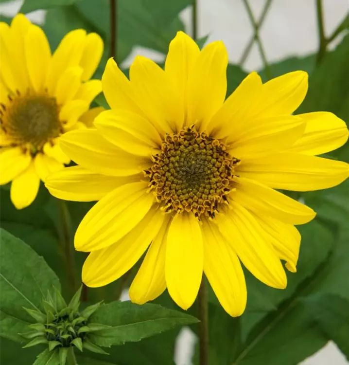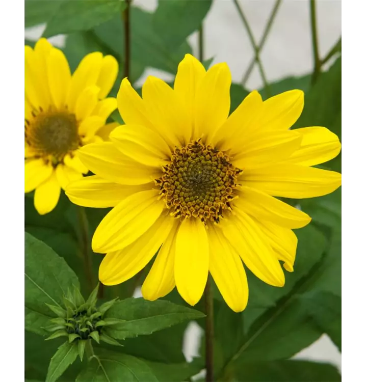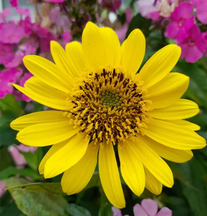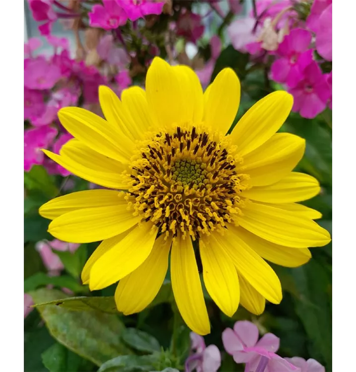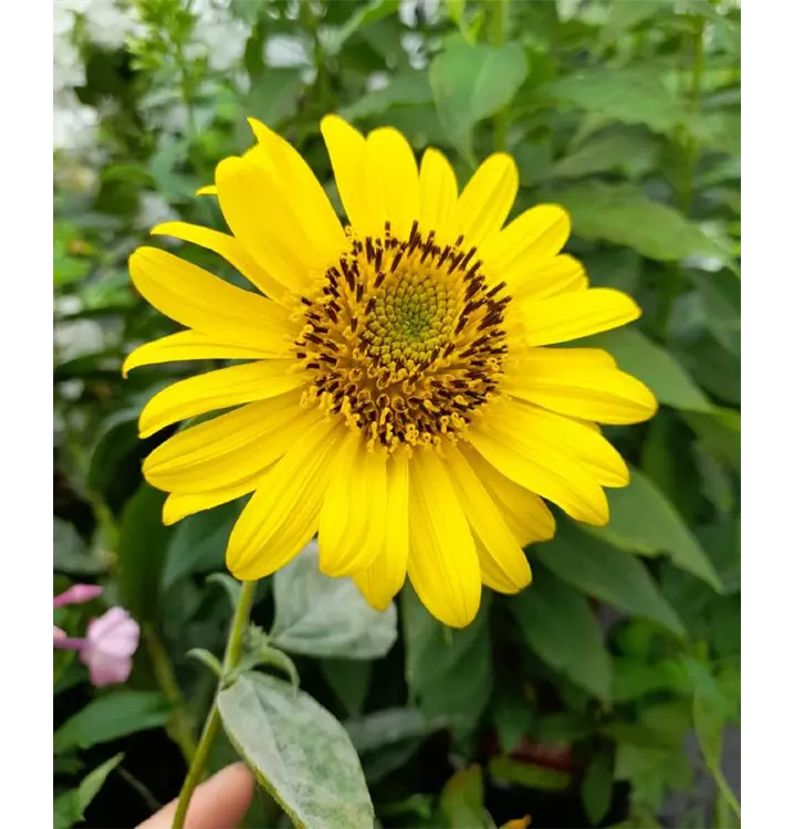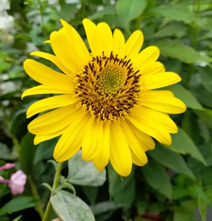 Blüte: gelb mit bräunlicher Scheibe, VII-IX
