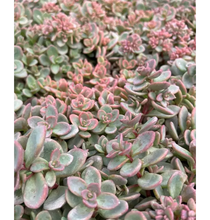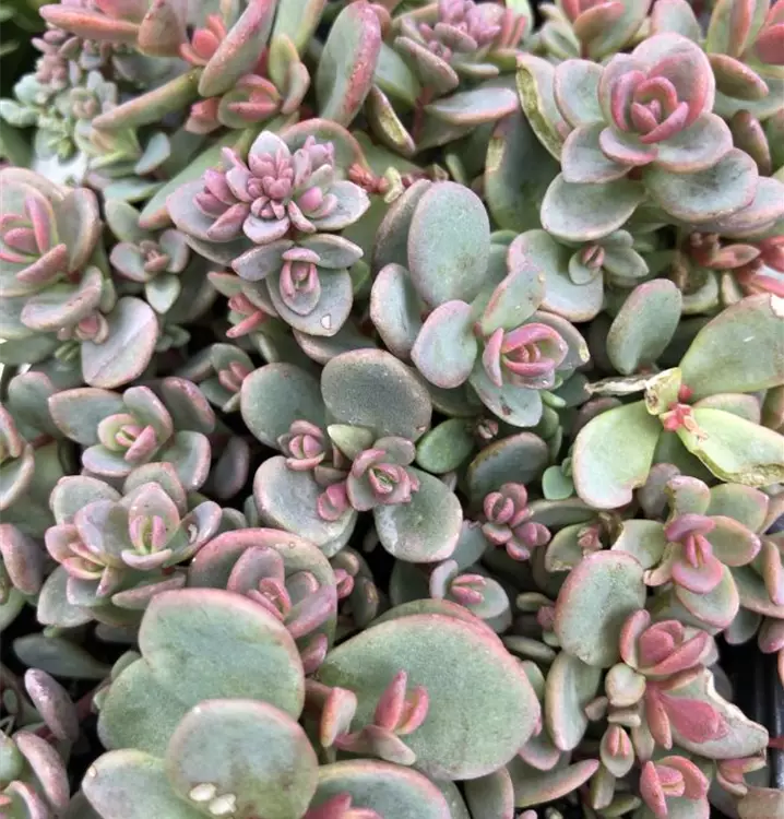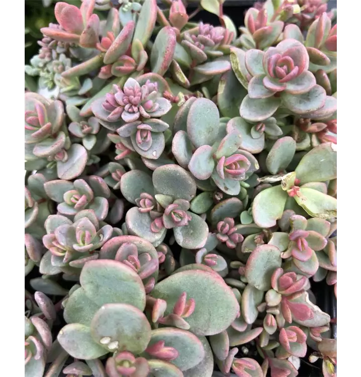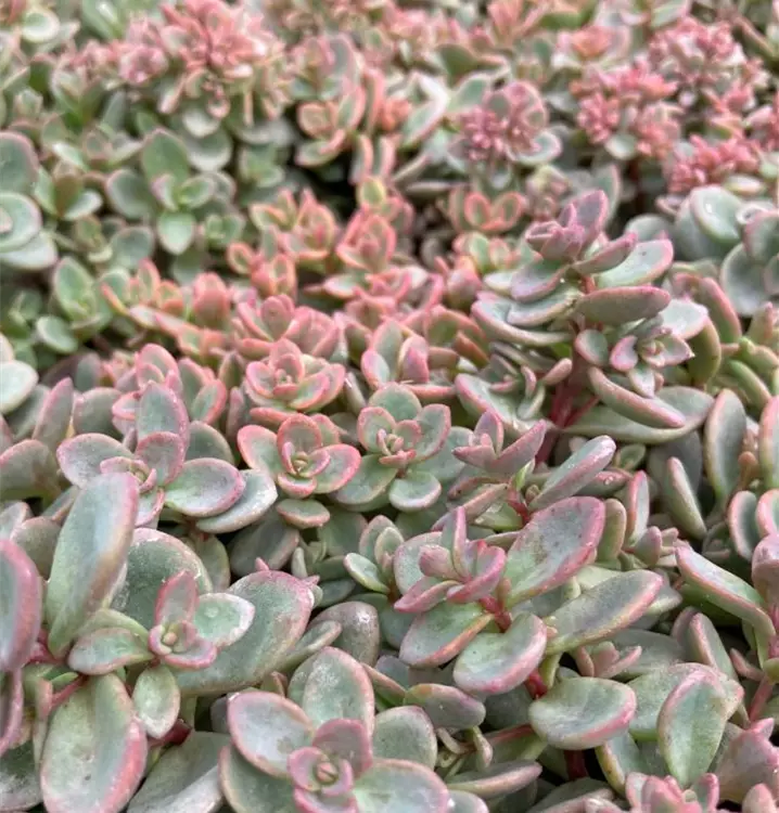 Blatt: blaugrün, rötlich überhaucht. Blüte: purpurrot, VIII-X; Höhe: ca. 10-20cm. Standort sonnig, trocken, für Steingärten, Tröge, Dachbegrünung.