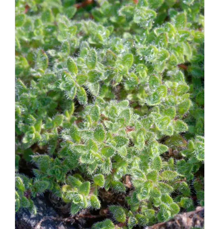 Wolliger Thymian, silbrige, fein behaarte Blätter.