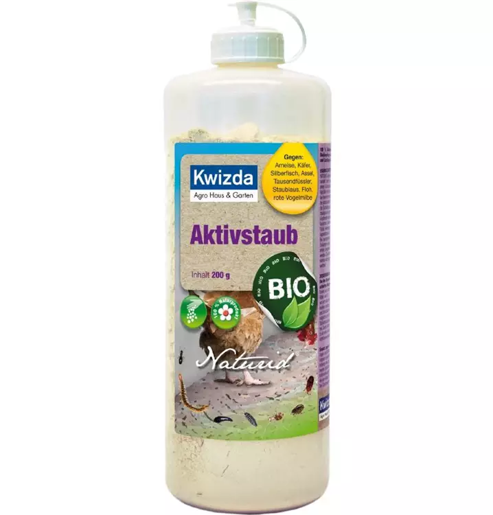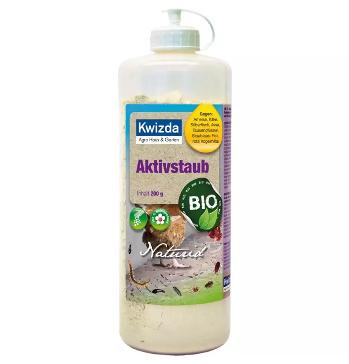Kwizda Naturid Aktivstaub ist ein natürliches Pulverpräparat gegen alle Arten von vor allem kriechenden Insekten zur trockenen Anwendung. Siliziumdioxid kommt als fossile Algenablagerung von Kieselalgen, auch Diatomeen genannt, in der Natur vor.