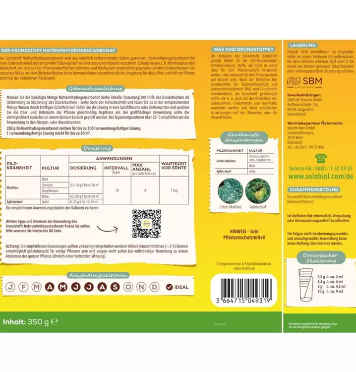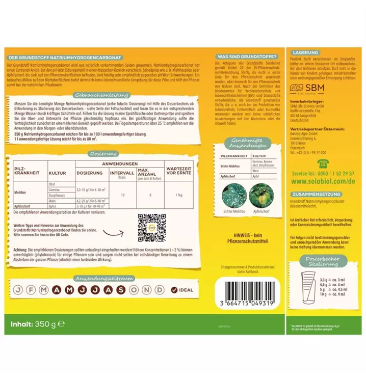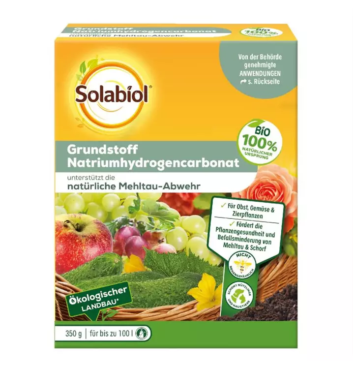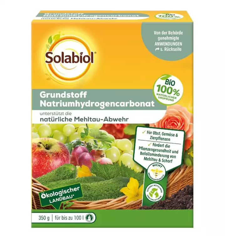 Der Solabiol Grundstoff Natriumhydrogencarbonat unterstützt die Pflanzengesundheit indem er der Pflanze bei der Pilzabwehr hilft. Genehmigte Anwendungen als Fungizid gegen Mehltaupilz (z. B. Echter Mehltau) und Apfelfschorf. Egal ob Obst, Gemüse oder Zierpflanzen – mit Grundstoffen helfen Sie Ihren Pflanzen dabei, Schädlinge und Pilzkrankheiten abzuwehren und fördern so ganz natürlich die Pflanzengesundheit.