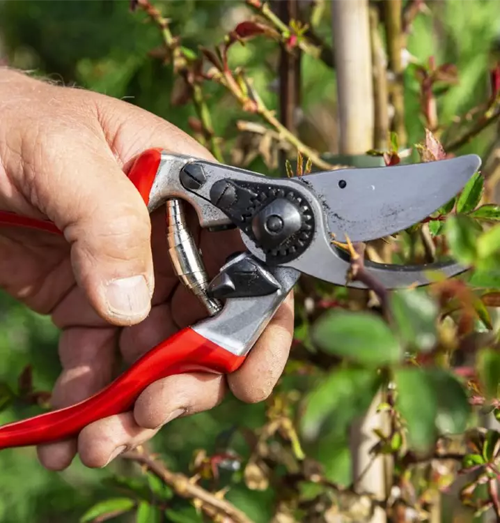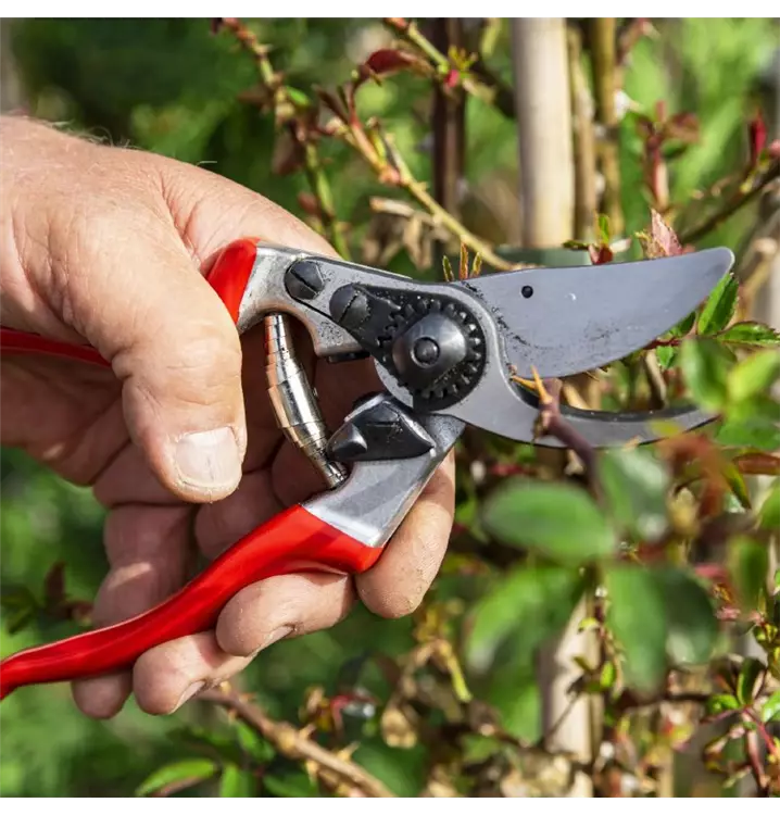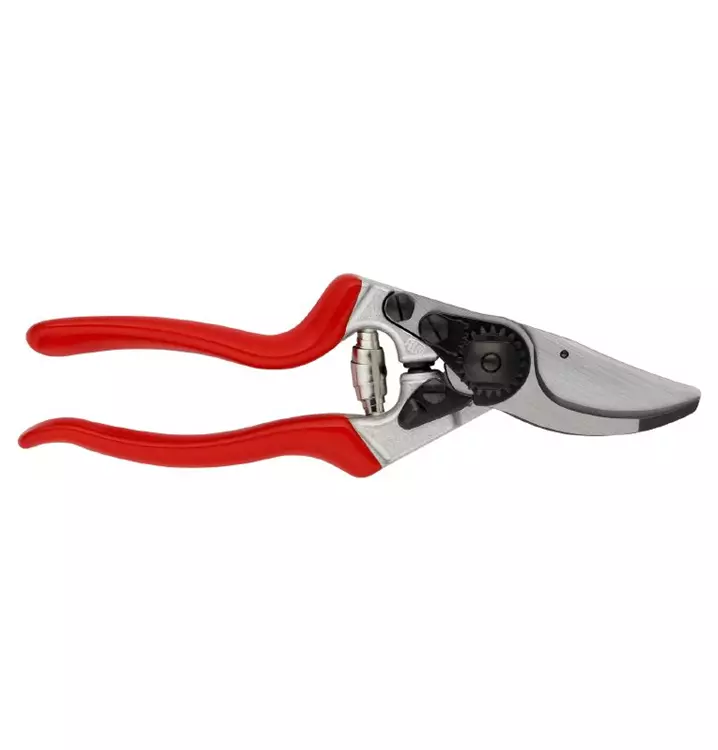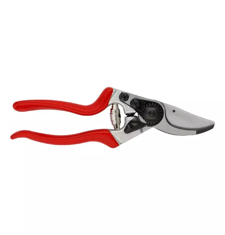 Linkshänderschere Felco 9 mit geschmiedeten Leichtmetallgriffen. Mit Pufferanschlag, Saftrille, Drahtabschneider und Schnitt-Feineinstellung. Klinge und Gegenklinge nicht vernietet, somit schnell auswechselbar. Schnittleistung ca. 25 mm Ø. Länge 210 mm. Gewicht 245 g.
