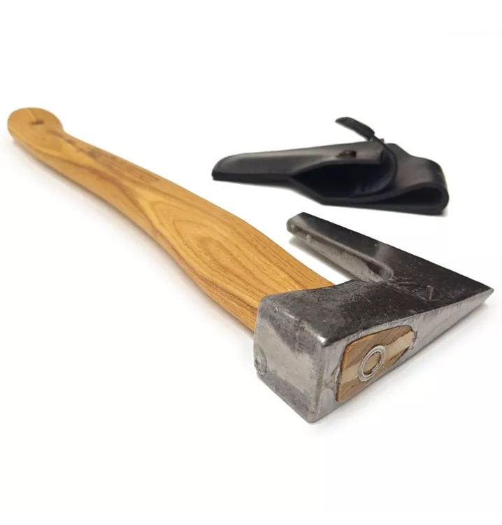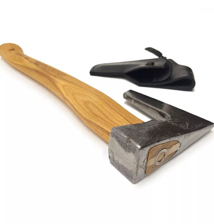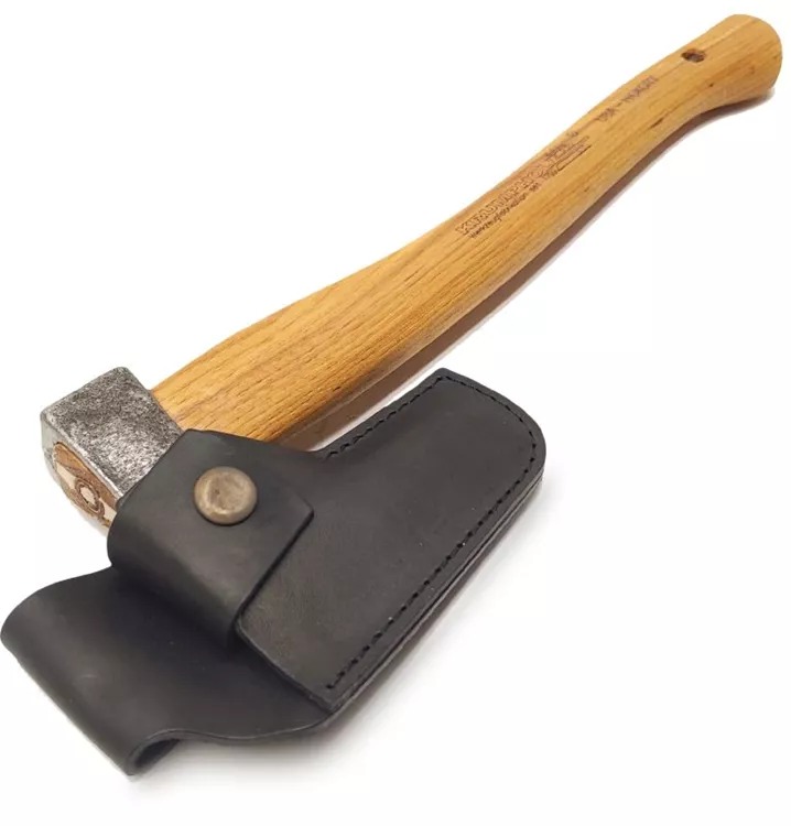Geschmiedetes leichtes Gartenbeil Nr. 0334 von Krumpholz mit 330 Gramm Kopfgewicht und 36 cm USA-Hickorystiel inkl. Lederscheidenschutz mit Gürtelschnalle. Für die Jagd, zum Wandern und die Gartenarbeit. Auch sehr gut zum Spalten von leichtem Anzündholz geeignet.