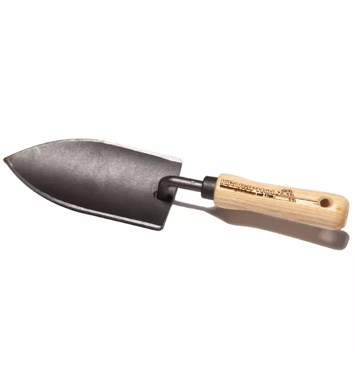 Geschmiedete Junior-Pflanzkelle Nr. 1470 von Krumpholz mit 10 cm Eschengriff. Die perfekte Pflanzkelle für die kleinen Gärtnerinnen und Gärtner.