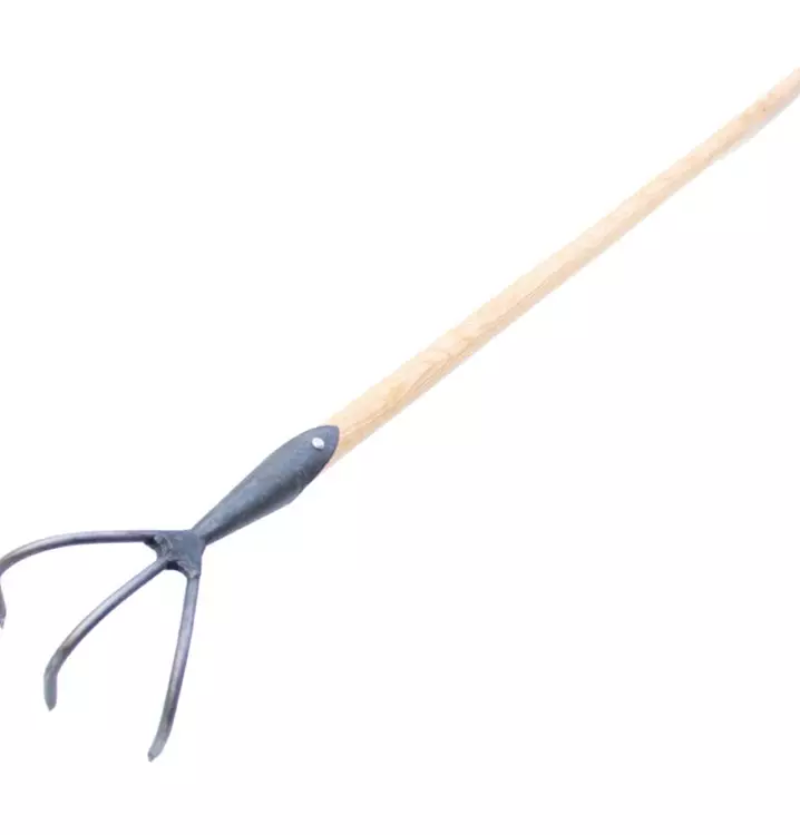 Geschmiedeter großer Kultivator von Krumpholz mit 3 Zinken und 140 cm Eschenstiel.