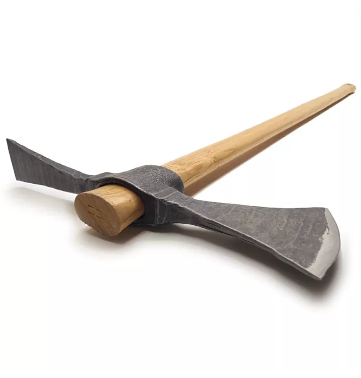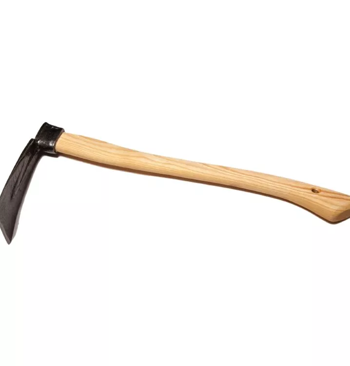 Pflanzhandhacke Nr. 1523 von Krumpholz. Geschmiedet mit 55 cm Eschen-Kuhfußstiel. Zum Graben von Pflanzlöchern und zum Durchschlagen von Wurzeln.