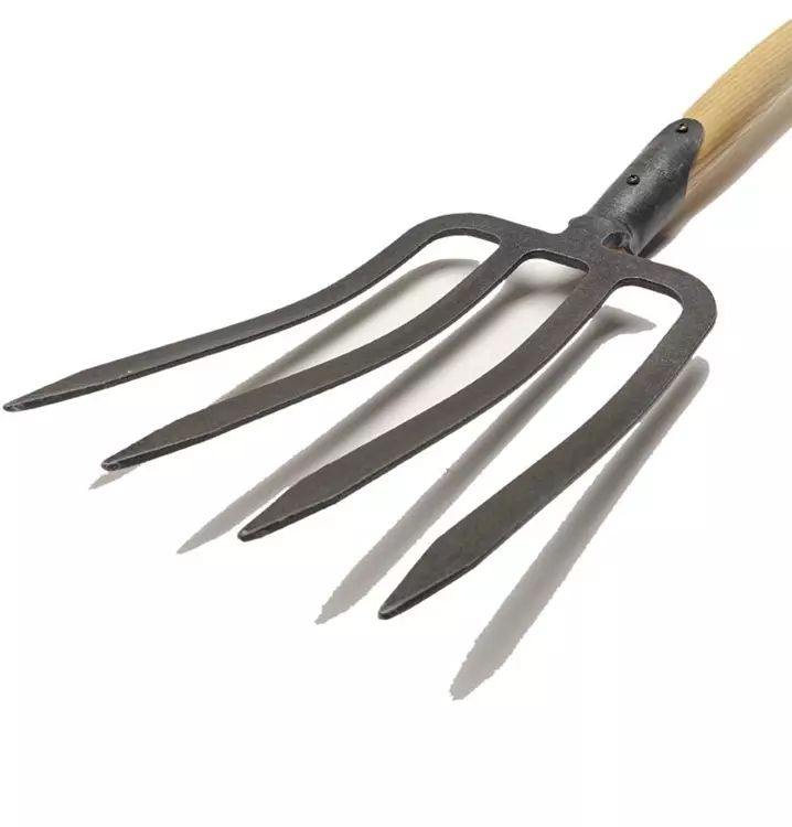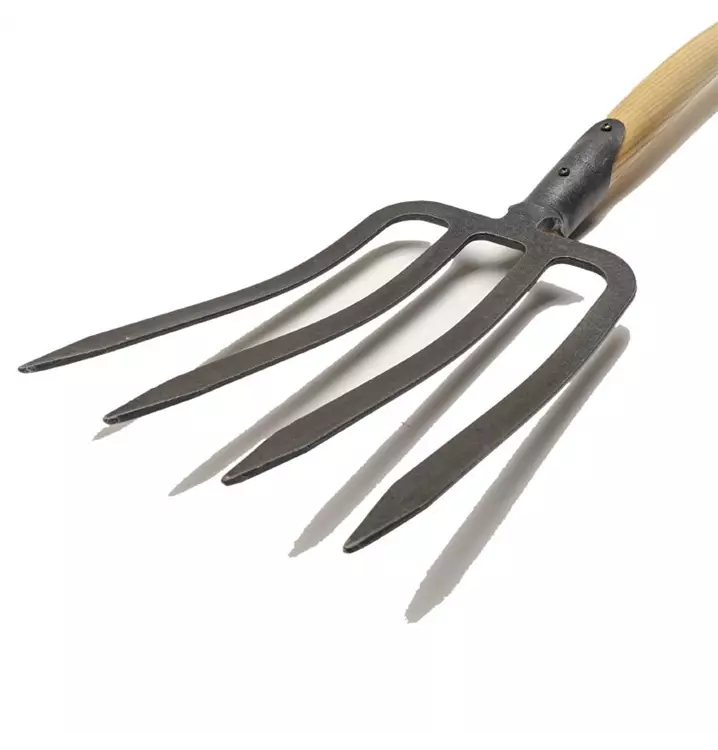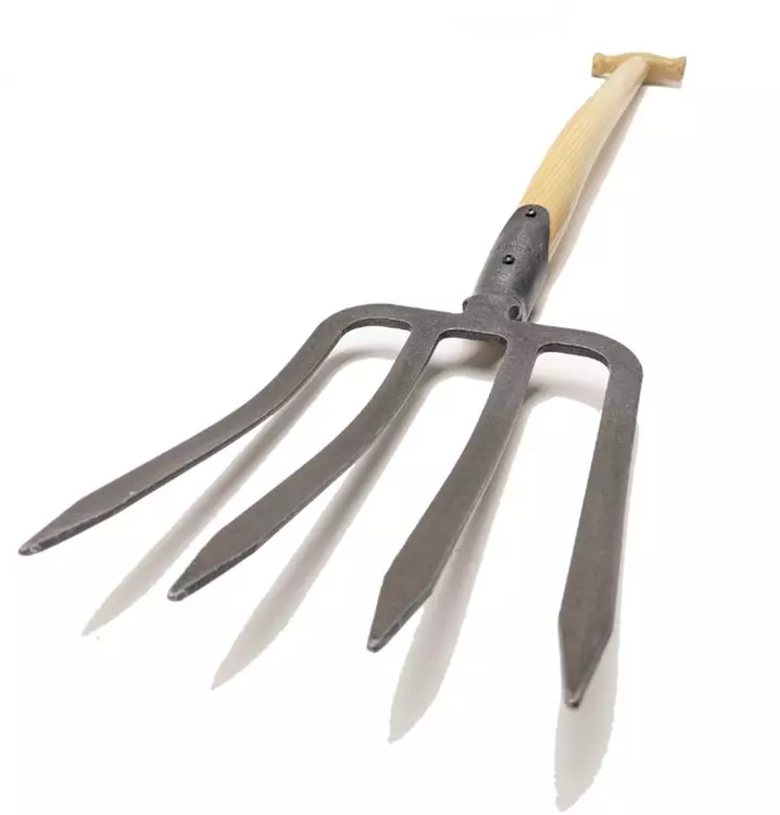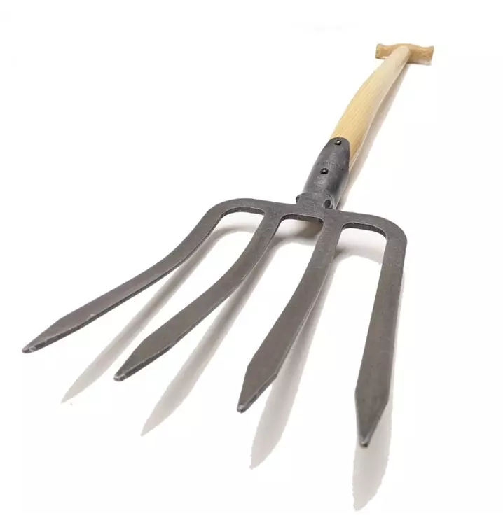 Geschmiedete Spatengabel bzw. Grabegabel mit Bajonettzinken von Krumpholz. Zum Umgraben von leichten und schweren Böden.