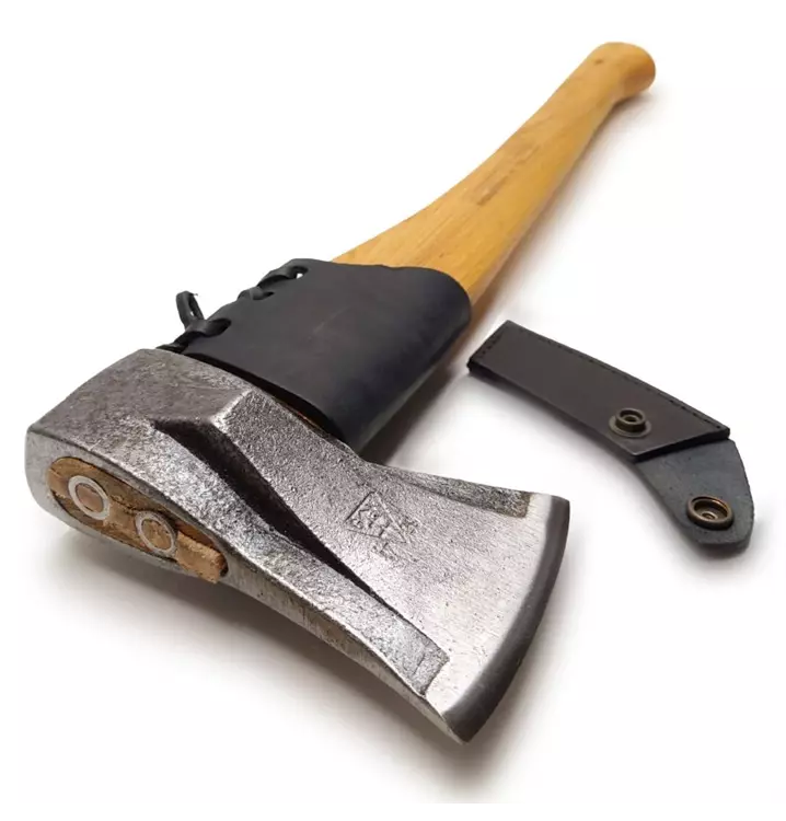 Geschmiedet, mit geöltem 60 cm Hickorystiel und Lederschneiden- und Stielschutz. Mit hohem Keilwinkel zum leichten Spalten von Brennholz. Der genähte Lederstielschutz schützt den Holzstiel wirksam vor Beschädigungen und lässt das Holz trotzdem atmen. Nach der Arbeit im Regen wird der Stielschutz zum Trocknen zurückgezogen. Eine professionelle Spaltaxt für den dauerhaften Einsatz.