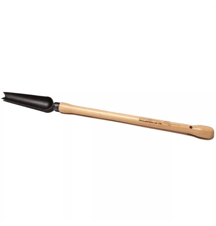 Unkrautkelle / Jätekelle von Krumpholz zum gezielten Unkrautausstechen. Geschmiedet mit 48 cm Eschen-Knopf-Stiel
