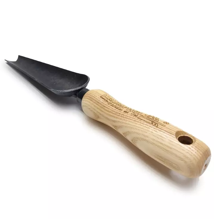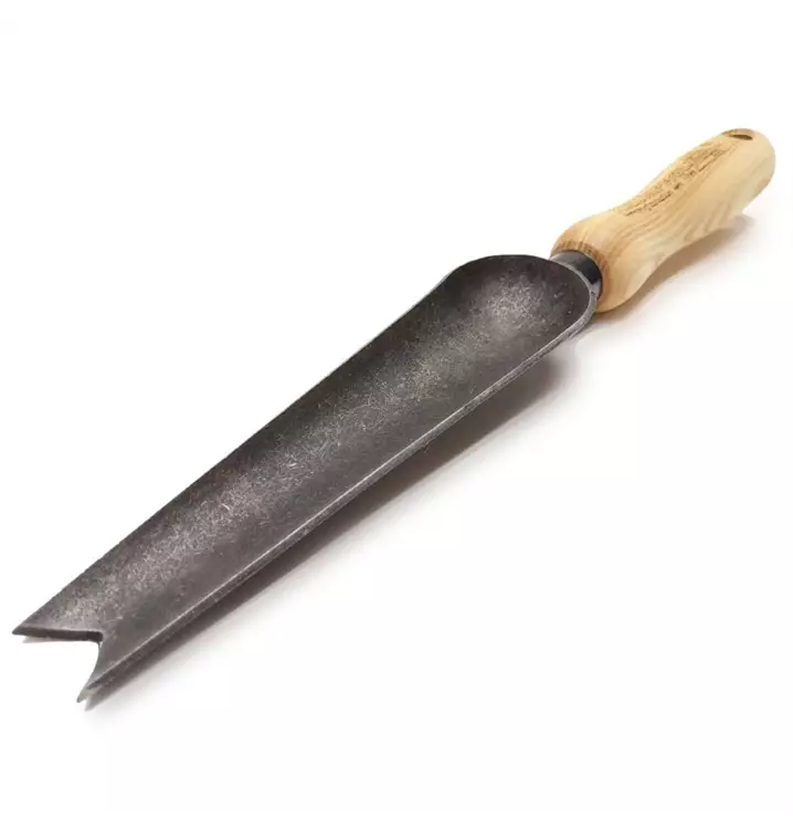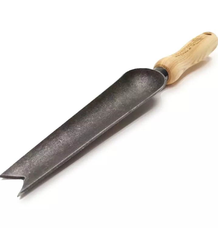 Unkrautkelle / Jätekelle von Krumpholz zum gezielten Unkrautausstechen. Geschmiedet mit 14 cm Eschengriff.